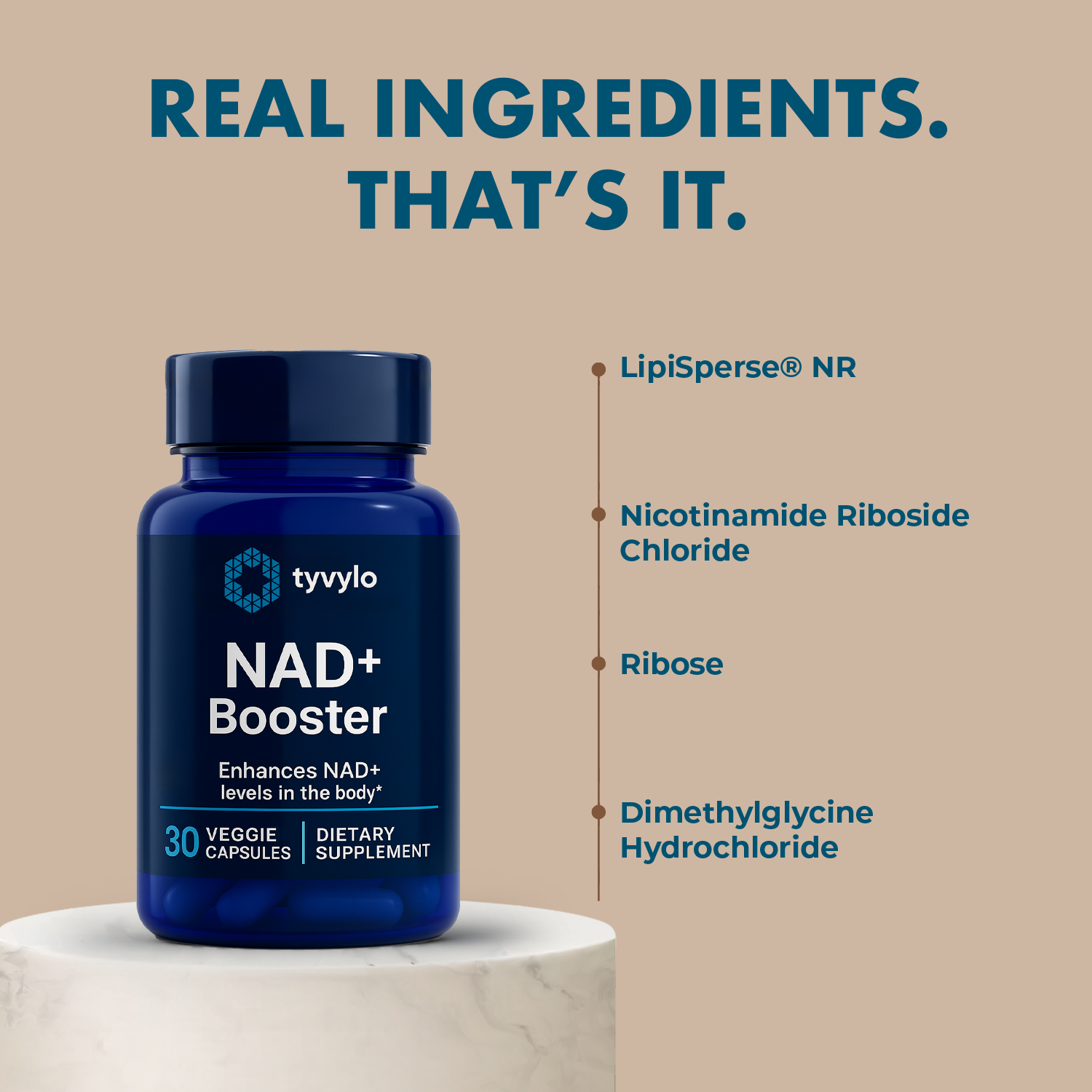 Tyvylo FutureLab NAD⁺ Booster is a premium NAD supplement formulated to support NAD⁺ (nicotinamide adenine dinucleotide) levels in the body, particularly in older adults. NAD⁺ is a vital coenzyme found in every cell and plays an essential role in energy production, yet its levels naturally decline as we age.